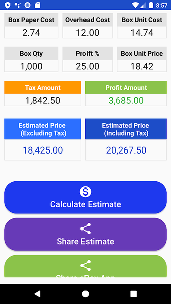 eBoxは、箱の価格、重量、サイズを簡単に計算する革新的なツールです。Androidデバイス用の無料アプリです。あなたの商品の価値や受け取る金額を計算する強力な方法を提供します。ポンド、キログラム、平方フィートで販売する人にとって必要不可欠なツールです。